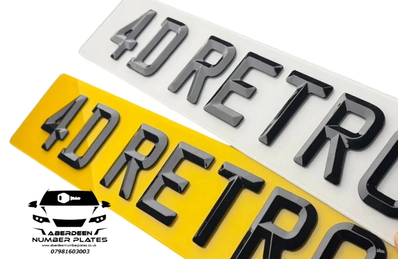 Our expert team ensures that each plate meets legal specifications, including font size, spacing, and visibility, guaranteeing road legality without compromising on aesthetics. With Aberdeen Number Plates' new retro bevel style Road Legal Number Plates, you can drive with confidence, knowing that your vehicle not only looks great but also adheres to all necessary regulations. Explore our collection online or visit our store to discover the perfect 3D gel plates for your vehicle today. Drive in style with Aberdeen Number Plates.